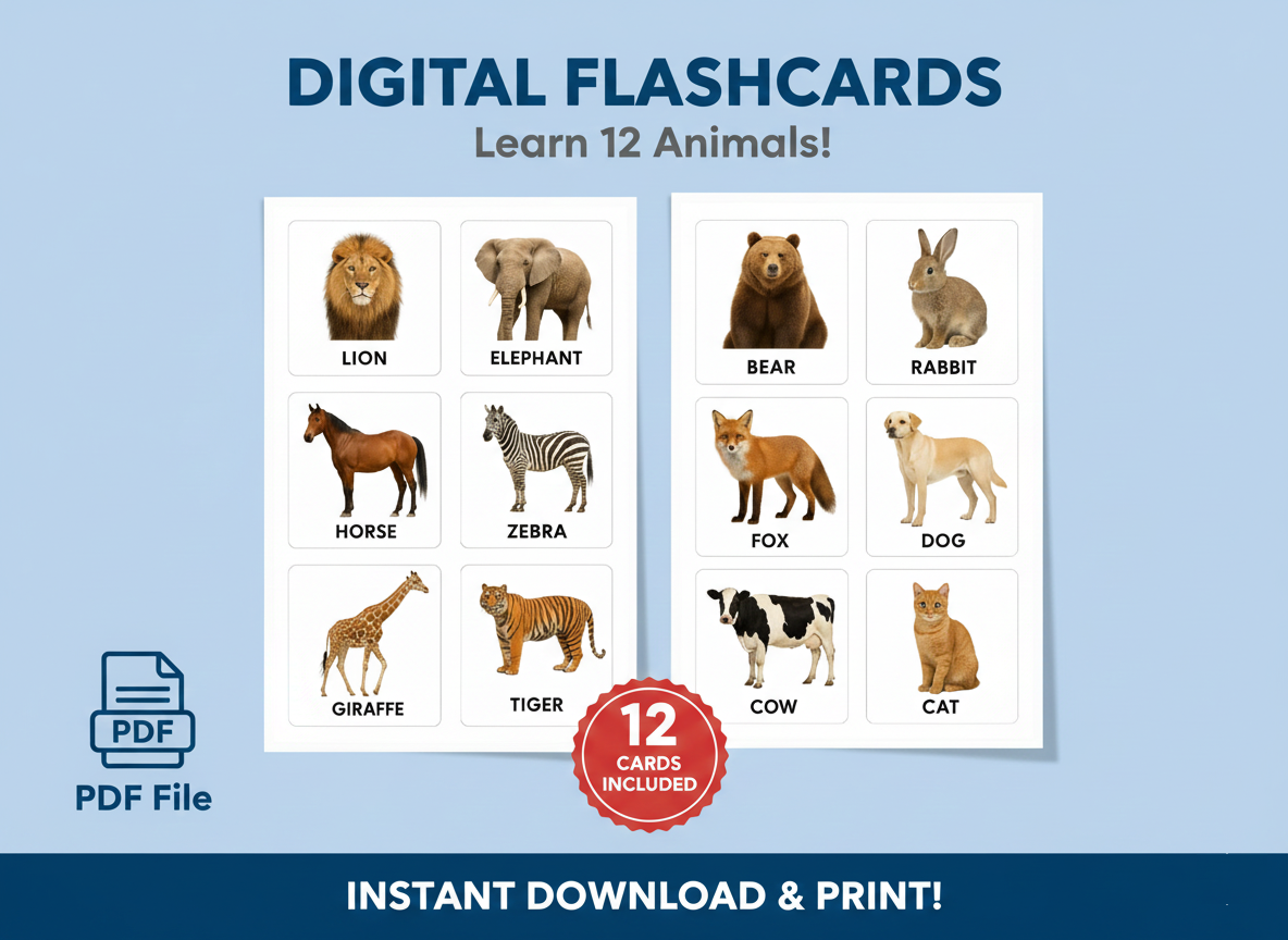 Make learning fun and interactive with these Cute Animal Flash Cards! Designed for preschoolers and early learners, these cards help children recognize animals, improve memory, and develop early vocabulary. Bright illustrations and engaging layouts make learning enjoyable.