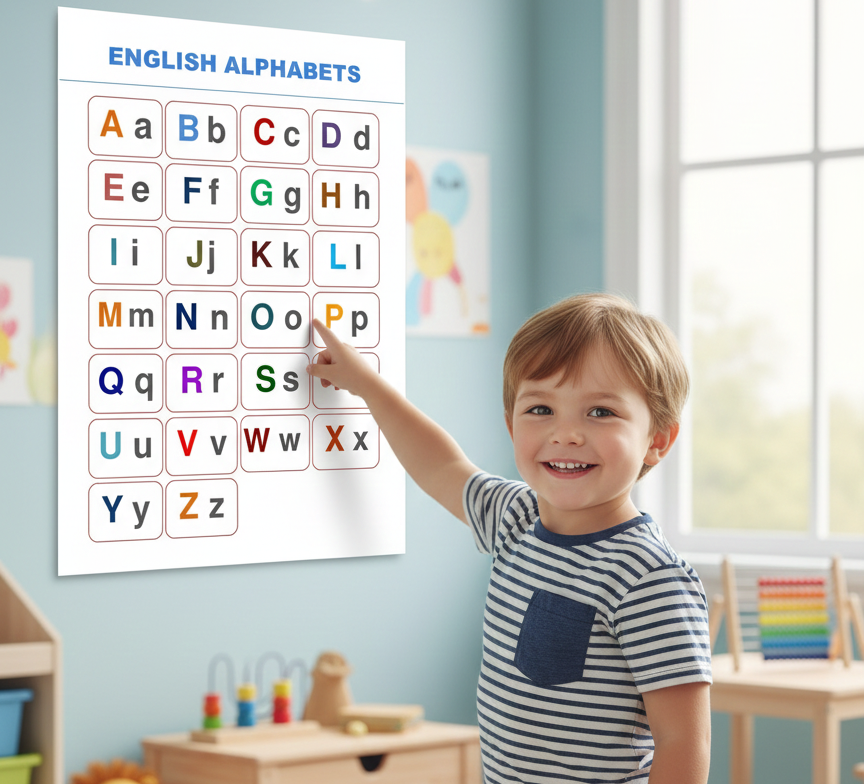 Make learning letters fun and interactive with this English Alphabet Learning Chart. Designed in a clean, colorful, and easy-to-read layout, this chart displays all 26 uppercase and lowercase letters, making it perfect for early literacy and visual learning. Ideal for classrooms, homeschooling, kids’ study corners, or nursery décor. Simply download, print, and display—learning the alphabet has never been easier!