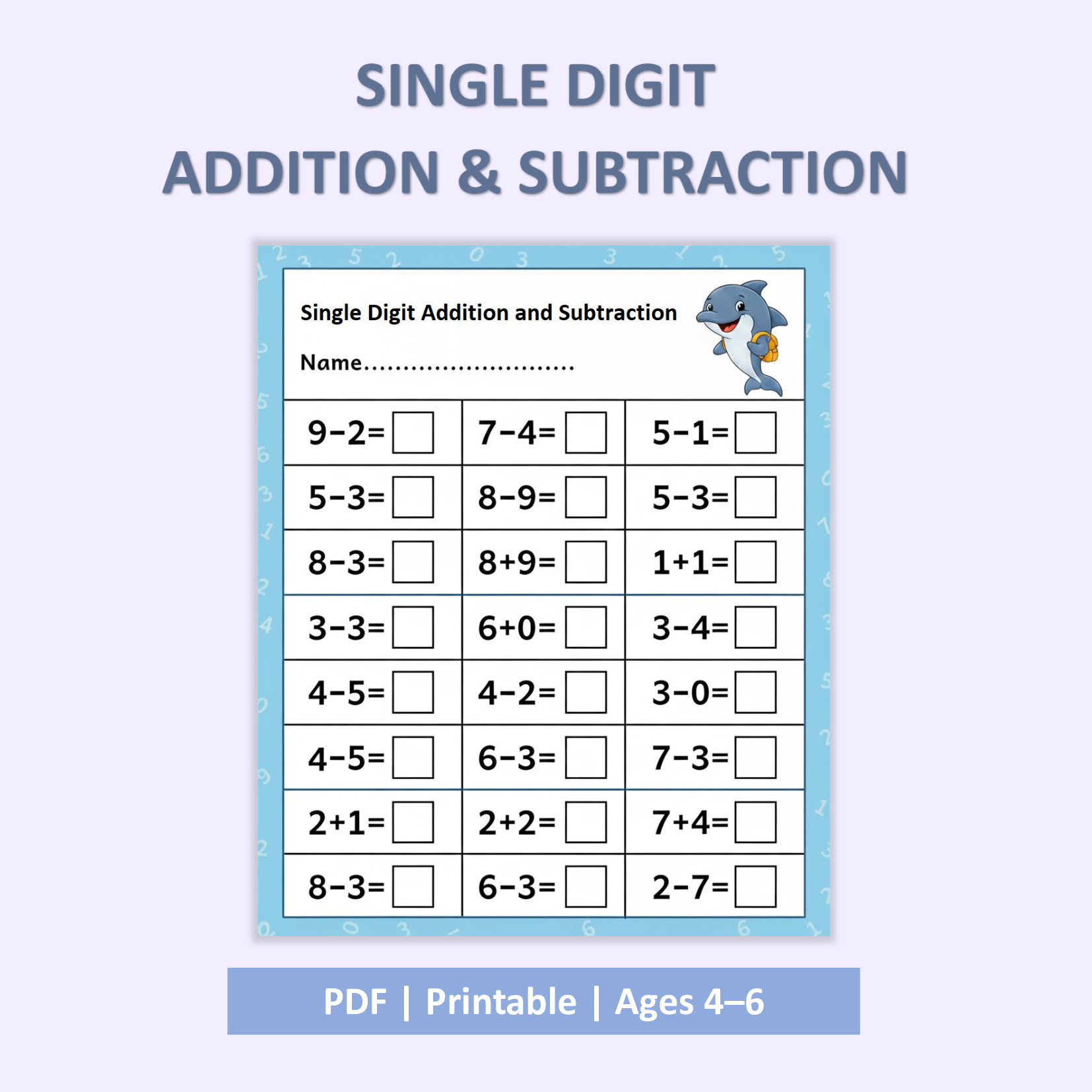 This Single Digit Addition and Subtraction Worksheet helps children practice basic math skills in a fun and simple way. Designed for early learners, it builds number confidence, improves calculation speed, and supports foundational math learning.